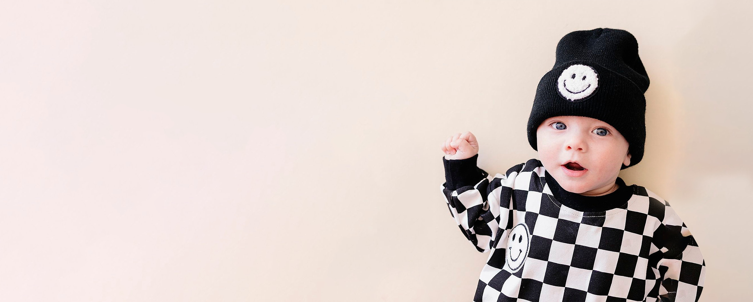 Bubble Romper | Checkered Smiley Black