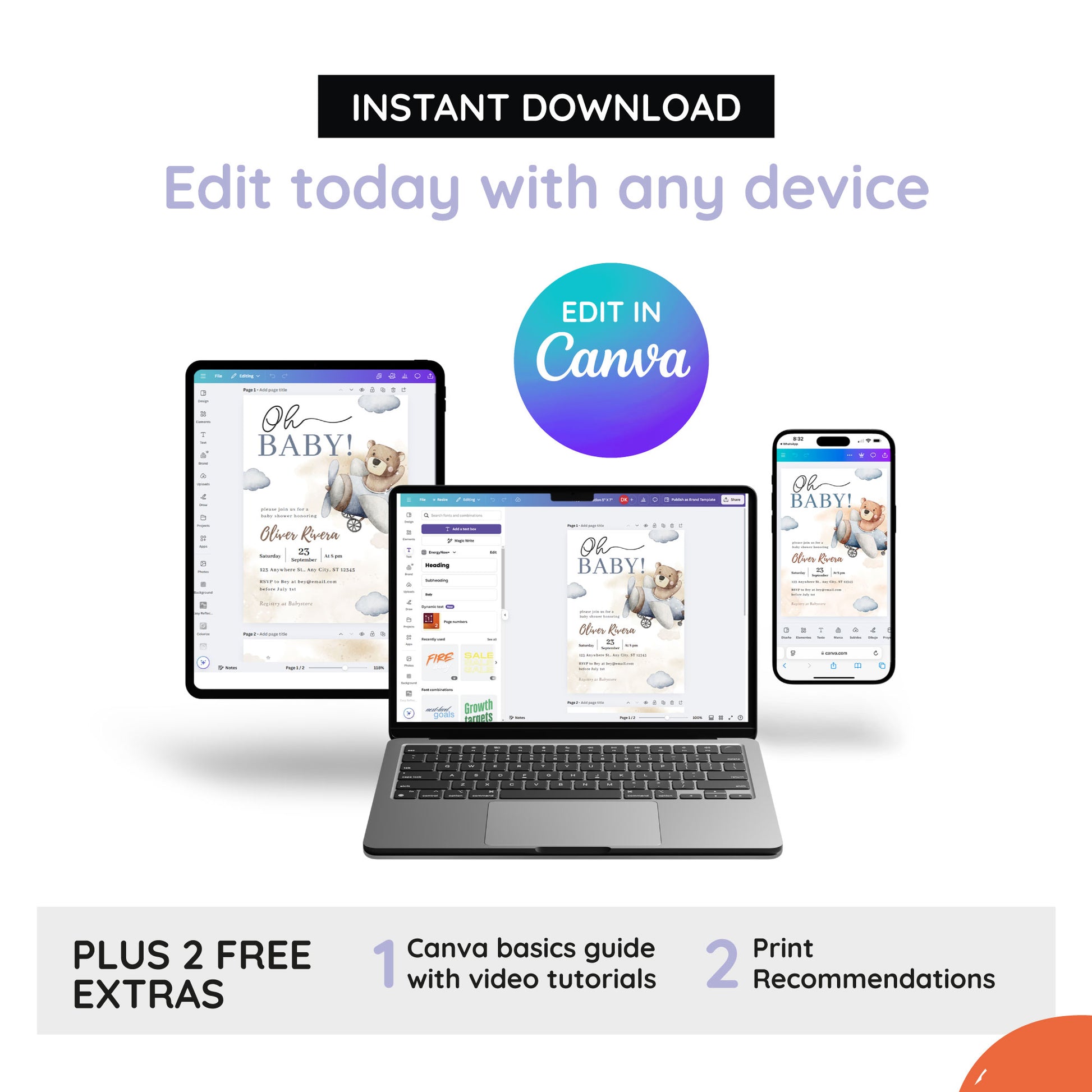 This listing offers an editable template for you to customize yourself on Canva.com. Canva is an online editing platform that makes it easy to access and edit your template using your browser or the Canva mobile app.